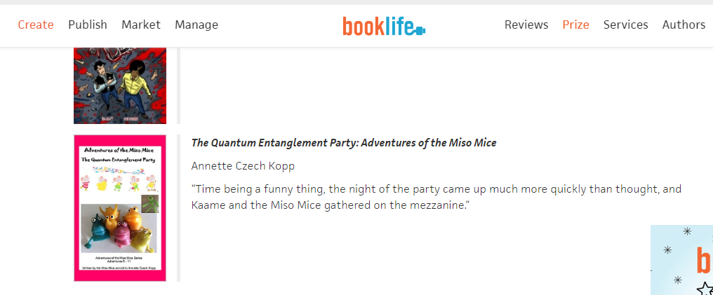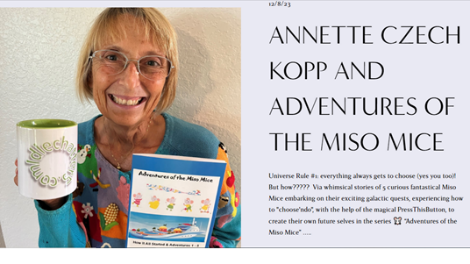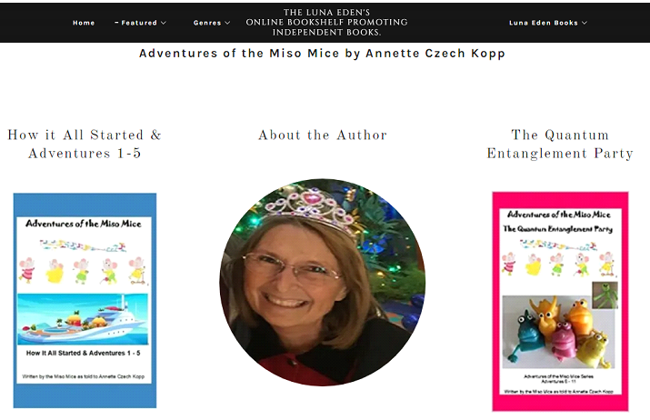 Annette Czech Kopp appears as a featured author along with š āAdventures of the Miso Miceā & š«The Quantum Entanglement Party on 01/25/24 Luna Eden Publishingās The Curious Bookshelf https://thecuriousbookshelf.co.uk/annette-czech-kopp