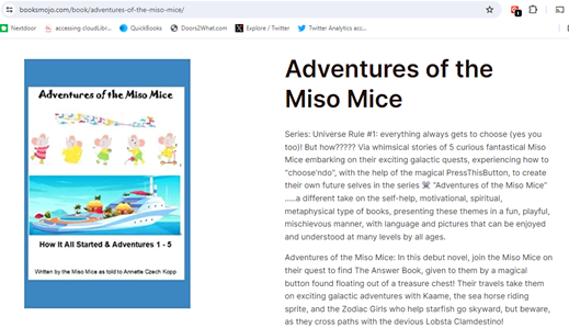 š āAdventures of the Miso MiceāĀ appears on the Booksmojo website on 02/28/24Ā Ā https://booksmojo.com/book/adventures-of-the-miso-mice/Ā Ā