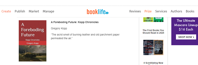 Kopp Chronicles novels nominated for All Author's "Cover of the Month" include "The Journey to Delphos","A Child's Breath", "The Heiress in Kent", "Her Majesty's Gold", "A New Dream Arises", "Danger to the Throne" and "A Foreboding Future"